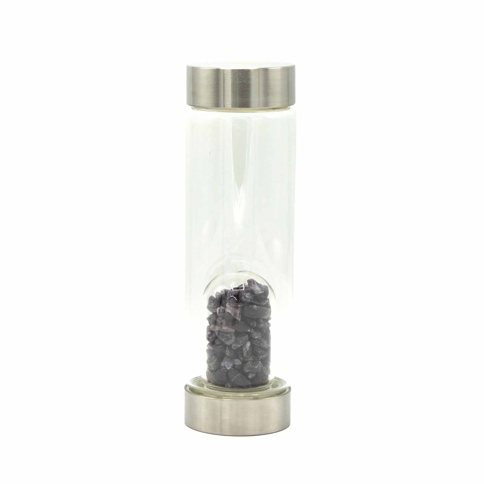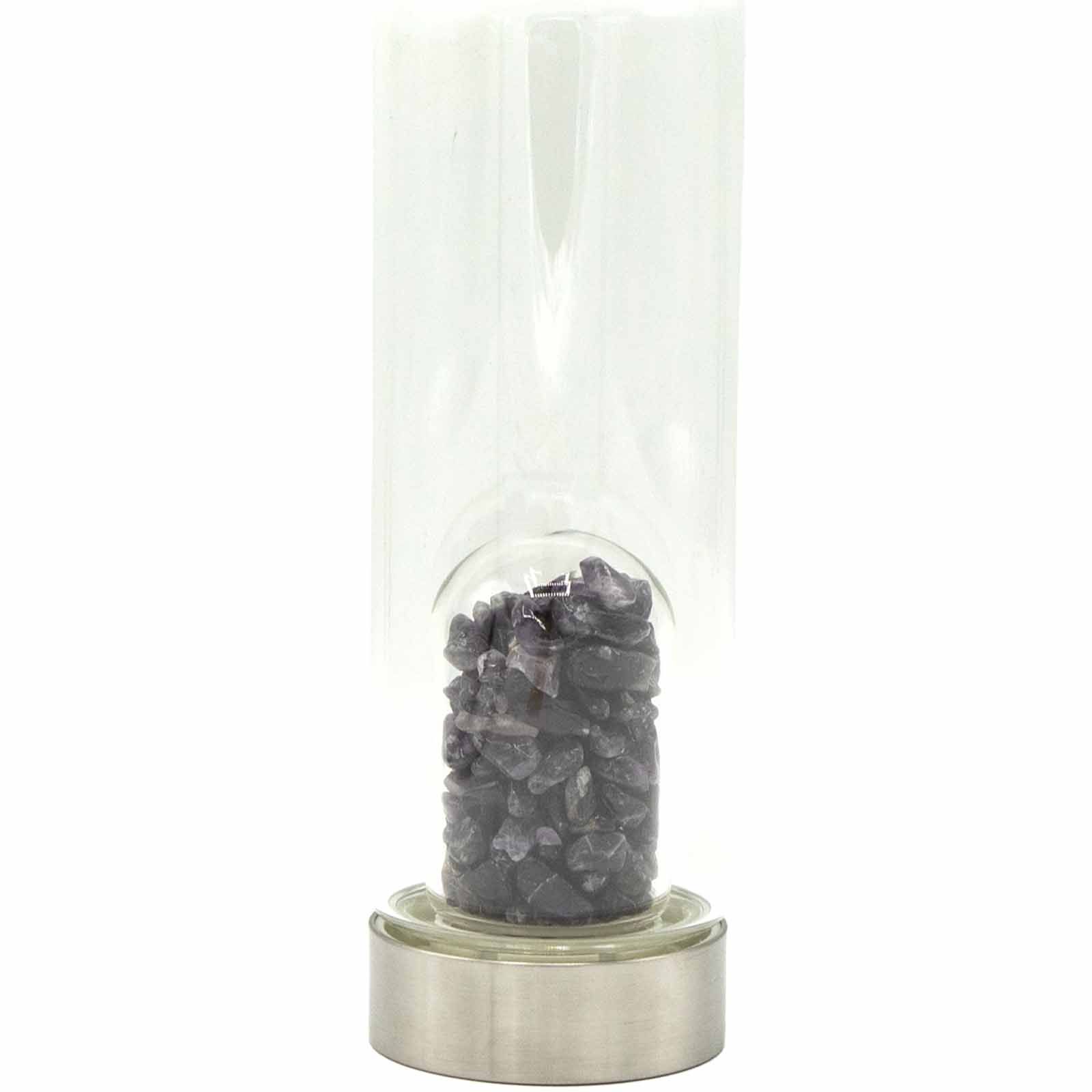 Crystal Infused Glass Water Bottle – Relaxing Amethyst – Chips